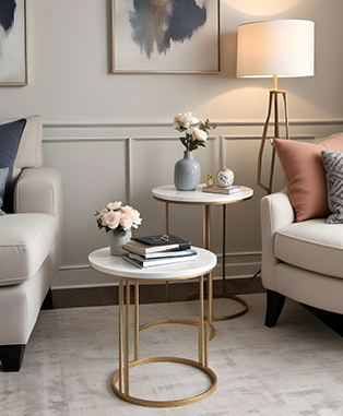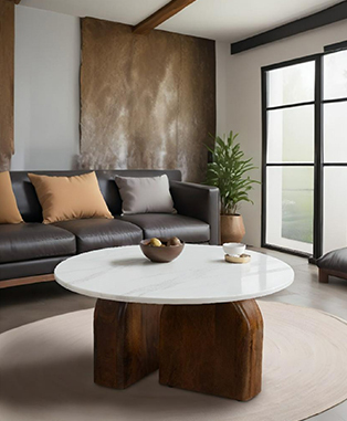 Sale RRI Goods Add to Cart Modern Round Side Table with Marble Top & Wood Base – Elegant Accent Table MSRP: Was: $599.99 Now: $429.00 Elevate your home with this modern round side table, featuring a Banswara marble top and a stained m…